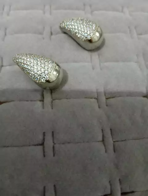 Brincos Gotas Cravejadas Semi Jóia Banhada a Ródio com Zircônias